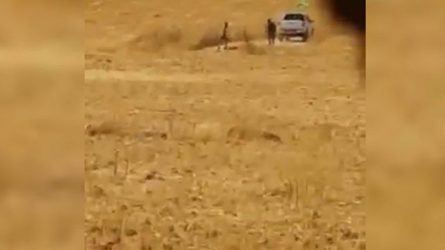 Terör örgütü YPG/PKK militanları, Tel Abyad'ın Ayn el-Arus köyü yakınlarında tarım arazilerini ateşe verirken görüntülendi.