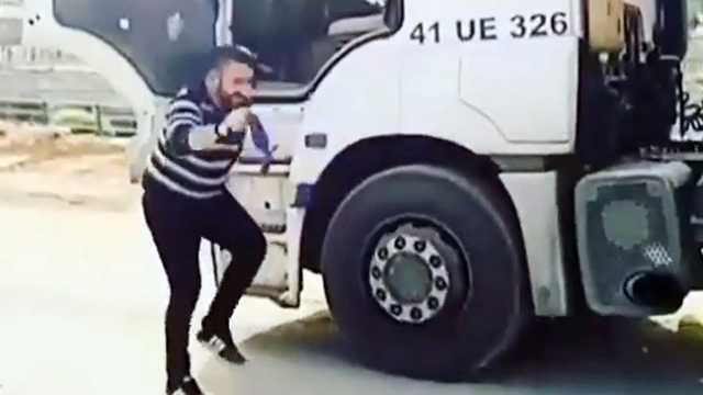 Kocaeli’de hareket halindeki tırı bırakan şoför, akan trafikte halay çekti. Sürücünün kazaya davetiye çıkardığı o anlar yoldan geçen vatandaşlar tarafından kaydedildi.