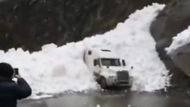 Tır sürücüsü çığın altında kalmaktan son anda kurtuldu