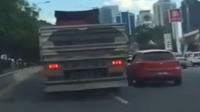 Ankara'da orta şeritte ilerleyen ve kendisine yol vermeyen otomobili, sıkıştıran tır sürücüsünün neden olduğu tehlikeli anlar başka bir aracın kamerası tarafından kaydedildi.