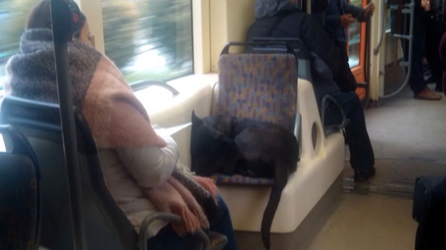 Tramvayın sevimli misafiri yolculara eşlik etti