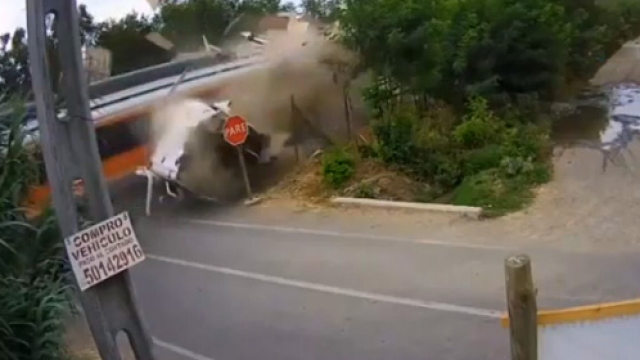 Tren kamyonu böyle biçti. Korkunç kaza Şili’de gerçekleşti. Hemzemin geçitten geçen kamyon sürücüsü dikkatsizliğinin kurbanı oldu.