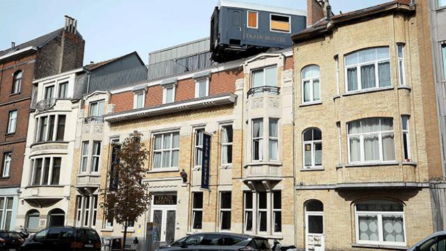 Belçika'nın başkenti Brüksel'de tren konseptiyle hazırlanmış otel içi ve tepesindeki 30 tonluk vagonlar, ziyaretçileri nostaljik bir yolculuğu çıkarıyor.