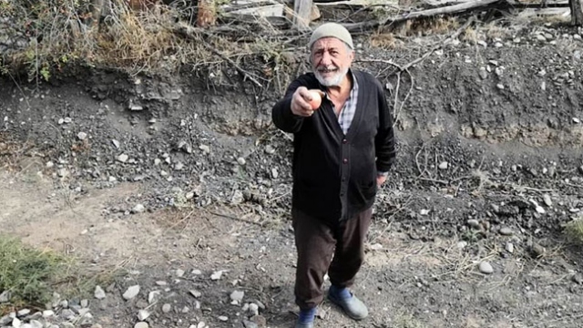 80 yaşındaki Mehmet Taştan, Erzincan'da kısa süreli duran Doğu Ekspresi yolcularına elma ikram etti.