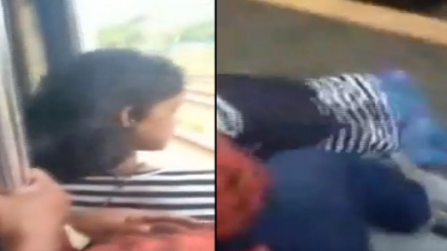 Hindistan Mumbai'de trenden dışarıya sarkan kız düşmek üzereyken diğer yolcuların çabasıyla kurtarıldı.