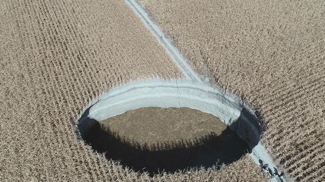 Konya Karapınar'da son 3 ayda 4. kez obruk oluştu. TRT Haber, son oluşan obruğu havadan görüntüledi.