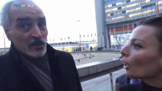 TRT WORLD Muhabiri gerginliği azaltma bölgelerine neden saldırıyorsunuz diye sordu, korumalar müdahele etti.