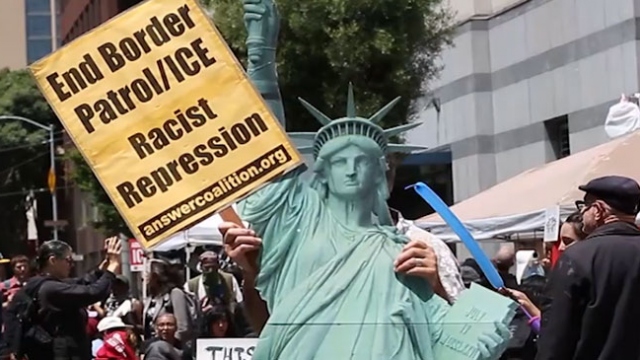 ABD Kaliforniya eyaletine bağlı San Francisco'da bulunan Göçmen ve Gümrük Uygulama Ofisi'nin önüne gelen yaklaşık iki yüz kişilik grup, ABD yönetiminin göçmen politikalarını protesto etmek amacıyla bina önünde çadır kurdu.