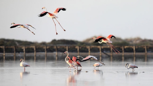 Tunus sahilindeki Kurba bölgesindeki kuş cenneti, kış aylarının yaklaşması nedeniyle göçmen misafirlerinden flamingoları ağırlamaya başladı.