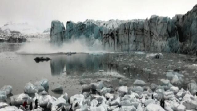 İzlanda’nın Jökulsarlon Gölü'nde, turistlerin buzulları seyrettiği sırada büyük bir buz kütlesinin göle düşerek oluşturduğu dev dalgalar turistleri korkuttu.