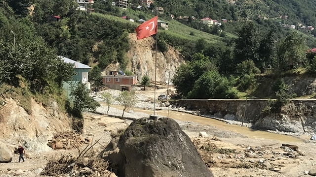 Giresun'un Espiye ilçesine bağlı Ericek köyünde derenin kenarında bulunan birçok yapı zarar gördü. Ancak derenin ortasındaki Türk bayrağının bulunduğu kaya ayakta kaldı.