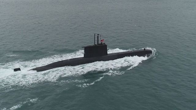 Türk Silahlı Kuvvetlerine ait "TCG Sakarya S-354" denizaltısı, Karadeniz Uyum Harekatı'na katılmak için İstanbul Boğazı'ndan yunus balıkları eşliğinde geçti.