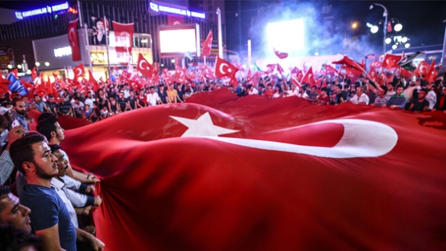 Kendi milletine acımasızca ateş açan hainler, 15 Temmuz’da, milletin yüreğinde dalgalanan vatan ve bayrak sevdasını hesaba katmadı. Kadını erkeği, yaşlısı genci Cumhurbaşkanı Erdoğan’ın çağrısı ile sokağa koştu, omuz omuza milli iradeye sahip çıktı.