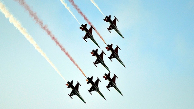 Türk Hava Kuvvetleri'nin akrobasi timi Türk Yıldızları, Malazgirt Zaferi ve Büyük Taarruz'un yıl dönümü dolayısıyla Afyonkarahisar'da gösteri uçuşu yaptı.