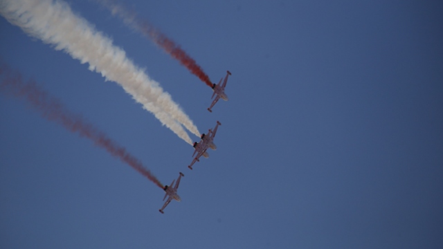 Türk Hava Kuvvetlerine bağlı akrobasi timi Türk Yıldızları ve SOLOTÜRK, Konya'nın Ereğli ilçesinde gösteri uçuşu yaptı.