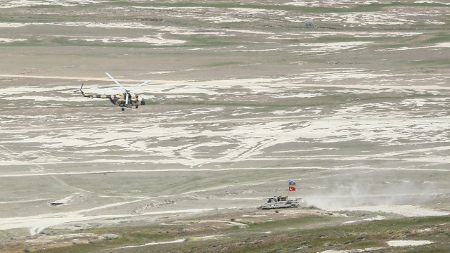 Türk ve Azerbaycan Silahlı Kuvvetlerinin Azerbaycan'da başlattığı ortak askeri tatbikat kapsamında temsili düşman hedefleri kara ve havadan hedef alındı.