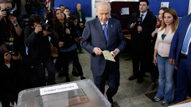 Milliyetçi Hareket Partisi Genel Başkanı Devlet Bahçeli oyunu Ankara Anıttepe Ortaokulu'nda kullandı.