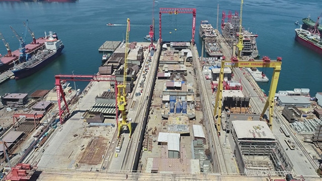 Türkiye’nin ilk yerli savaş uçak gemisi Çok Maksatlı Amfibi Hücum Gemisi TCG L400 Anadolu’nun inşası Sedef Tersanesi’nde hızla devam ediyor.