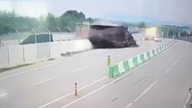 Kamyonun damperi üst geçide böyle çarptı