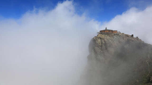 Doğu Karadeniz'de bulunan Soğanlı Dağları'nın üzerinde, sisli bulutların arasında kalan manzarasıyla Kırklar Mescidi dikkat çekiyor.