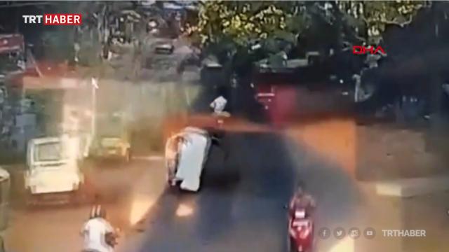Hindistan'da üzerine ağaç devrilen otomobil takla attı.