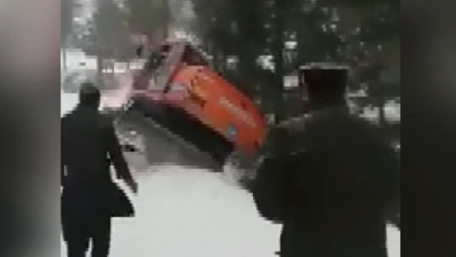 Pakistan'ın Murree bölgesinde, dağ yolunda yamaca düşen bir cipi kurtarmaya çalışan iş makinesi, kayarak ciple aynı kaderi yaşadı.