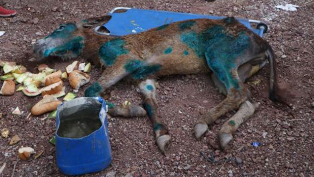 Yaralı eşeği halıya sarıp ölüme terk ettiler