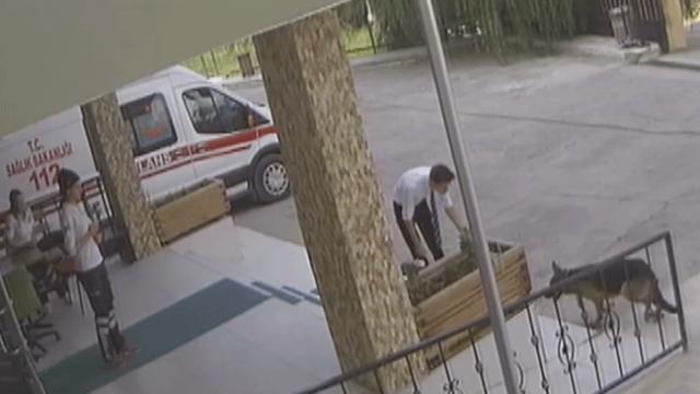 Amasya'da yaralı bir köpek, 112 acil yardım istasyonuna giderek sağlık ekiplerinin dikkatini çekmeye çalıştı. Durumu fark eden ekipler, köpeği tedavi altına aldı.