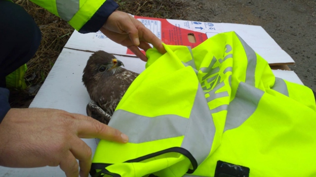 Bursa'da karayoluna inen Şahine otomobil çarptı. Yaralı şahine ilk müdahaleyi Bölge Trafik İstasyonunda görevli Polis Memuru, üzerindeki yeleği örterek yaptı.