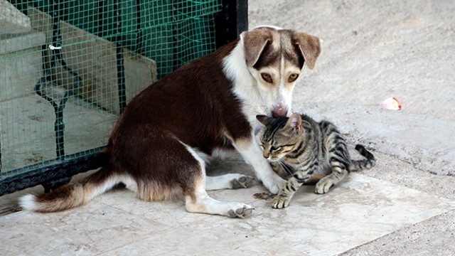 Yavru kediye annelik yapan köpek görenleri şaşırtıyor