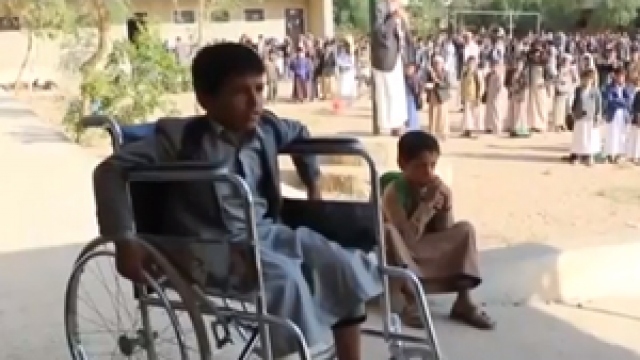 Yemen’nin Sada kentinde Suudi Arabistan öncülüğündeki koalisyon tarafından vurulan otobüsten yaralı olarak kurtulan öğrenciler okullarına buruk başladı.