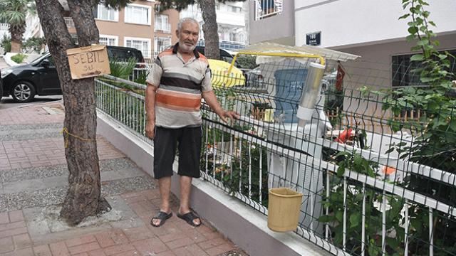 İzmir Karabağlar'da yaşayan Kenan Sain, yokuşun başındaki evinin bahçesine, yokuş çıkan vatandaşlar için su sebili koydu.