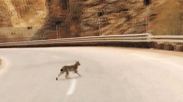 Doğada ender rastlanan hayvanlardan olan vaşak, Bayburt'ta görüldü. Yol kenarına inen vaşak bir süre sonra gözden kayboldu.