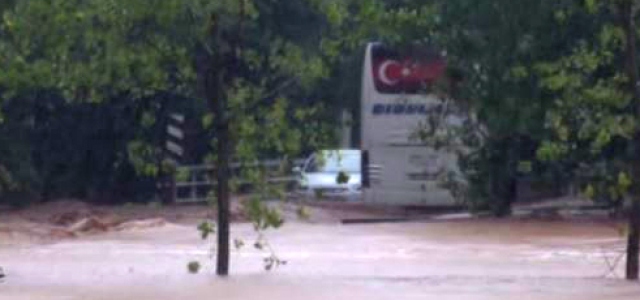 Bartın'ın Amasra ilçesinde sel nedeniyle köprü üzerinde 2 otomobil ile bir yolcu otobüsündekileri kurtarmak için İl Afet ve Acil Durum (AFAD) Müdürlüğü ekipleri çalışma başlattı.
