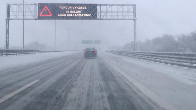 Yoğun kar nedeniyle D-100 kara yolunun Bolu Gerede mevkiinde trafik kontrollü olarak sağlanıyor.
