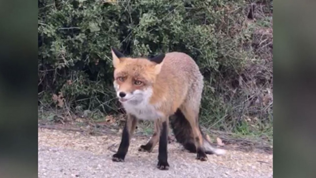 Tekirdağlı Bülent Öner, önüne ormanlık alandan çıkan bir tilkiyi, bisküvi ve kurabiye ile besledi. Karnı doyan hayvan, ormana geri döndü.