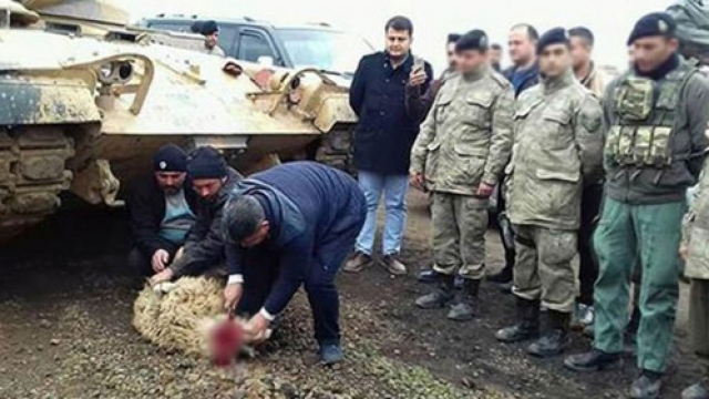 Zeytin Dalı Harekatı kapsamında Hatay’ın Hassa ilçesinde köylüler, harekata katılan askerler için kurban kesti.
