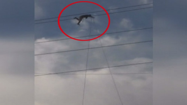 Osmaniye'de yüksek gerilim hattı üzerindeki tellerde çalışma yapan bir işçi yürekleri ağızlara getirdi. İp cambazı gibi tellerin üzerinde yatarak çalışan işçi uzun süre orada kaldı.
