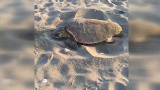 Antalya'nın Alanya ilçesinde, sahile çıkan caretta carettalar yumurtalarını bırakmaya başladı.