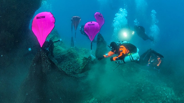 Yunanistan'ın kuzeyindeki denizden çıkarılan 2 ton plastik balık ağı, birçok canlı türünün yaşamını etkiliyor.