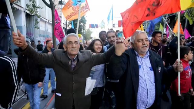 Yunanistan'ın başkenti Atina'da yaklaşık bin dolayında kişi, sığınmacılara destek amacıyla ırkçılık karşıtı gösteri düzenledi.