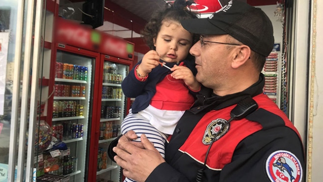 Yunus polisi ağlayan çocuğu şekerle güldürdü