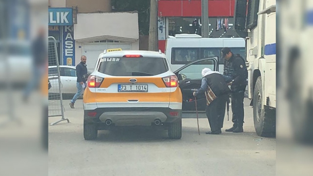 Şırnak'ın Şah Mahallesi'nde yürümekte zorlanan yaşlı kadına polis ekipleri yardım etti. Bir süre sandalyede dinlendirilen kadın, gideceği yere taksiyle ulaştırıldı.