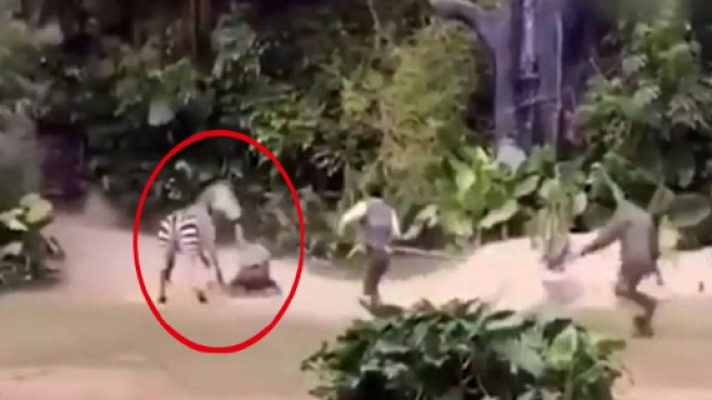 Çin’de bir hayvanat bahçesinde dehşet dolu anlar yaşandı. Bir zebra, hayvan bakıcısına saldırdı. Diğer bakıcılar müdahale etse de öfkeli zebra, kolundan ısırdığı adamı uzun süre bırakmadı.