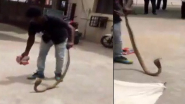 Hindistan’da bahçesindeki toprak alanda yılan olduğunu fark eden adamın cesareti, yok artık dedirtti. Önce toprağı eşip yılanı bulan adam, ardından da onu çıplak elleriyle oradan çıkarttı. Kobra türü zehirli yılanla adeta oyuncak gibi oynayan adamı görenlerse şaşkınlıklarını gizleyemedi.