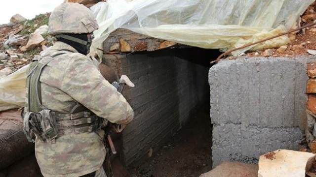 Afrin'in kuzeyindeki terör hedeflerine yönelik başlatılan Zeytin Dalı Harekatı kapsamında ele geçirilen terör örgütü PYD/PKK'ya ait tünel ve mevziler kaydedildi.