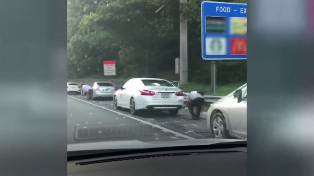 ABD’de otoyolda kapısı açılan zırhlı araçtan para yağdı. Havaya saçılan paraları toplamak için sürücüler araçlarını emniyet şeridine çekti.