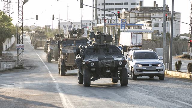 Suriye sınırındaki birliklere takviye amaçlı gönderilen zırhlı personel taşıyıcılar ve askeri araçlar, Hatay Reyhanlı'ya ulaştı.